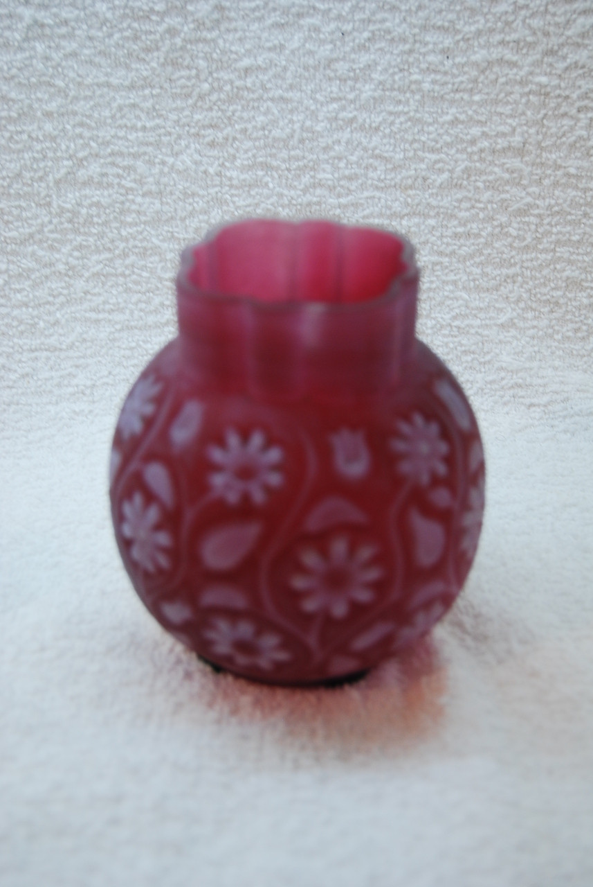 Loading... Please wait...This is for a rare Findlay Floradine Spooner produced in about 1888. It is in great shape with just a flake on the inner rim as shown. Chipping happened so frequently production lasted only one year because of great losses. Very little of this type of glass left, more common is the Findlay Onyx. Measures about 4" tall. INV #13-0885.
