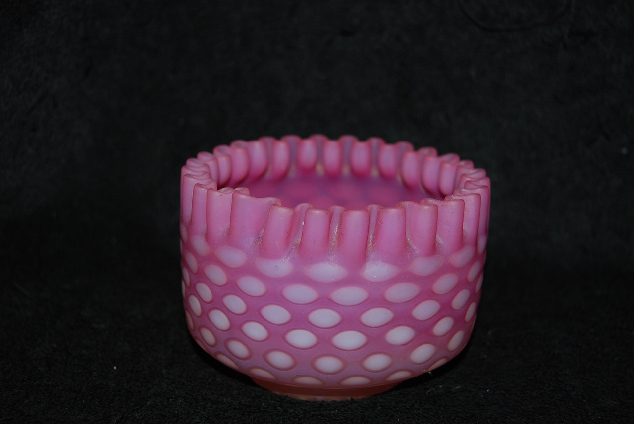 Loading... Please wait...This is quite a lovely Victorian Cranberry Satin Opalescent Finger Bowl produced during the 1880s. It is in fantastic condition with no chips, cracks, or repairs. It features a milky-opalescent raised pattern against a background of cranberry as shown. Polished pontil mark on bottom. Measures 4 1/4" across. A really beautiful Victorian piece of American Art Glass. INV #14-0577.
